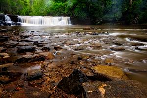 "Tranquil Cascade" captures the serene beauty of nature, showcasing a stunning waterfall cascading over smooth rocks into a gentle stream. The lush greenery surrounding the scene adds a vibrant touch, inviting viewers to immerse themselves in the tranquility of the moment. This artwork reflects the artist's passion for the outdoors and the calming effects of water in nature. Each element, from the flowing water to the textured stones, is meticulously composed to evoke a sense of peace and connection to the natural world. The photograph serves as a reminder of the beauty that exists in our environment, encouraging us to pause and appreciate the simple yet profound moments that nature offers.